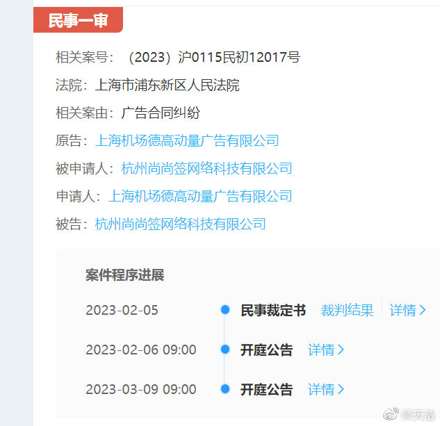 案件金额来看,六十多万元对于一般企业来说,金额并不算大,但因为这样一笔费用与杭州尚尚签网络科技有限公司宁可拒绝支付,而闹上法庭,其中必定另有隐情。难道说杭州尚尚签网络科技有限公司连六十多万的广告费已经支付不起?