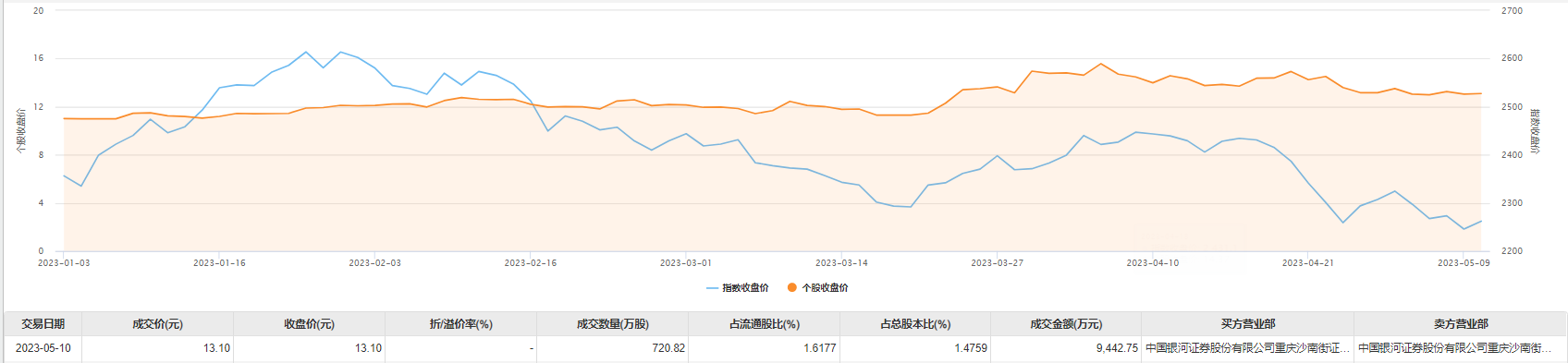 弘信电子5月10日大宗交易成交720.82万股,成交额9442.75万元,占当日总成交额的59.91%,成交价13.1元,较市场收盘价13.1元持平。
