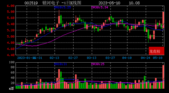 截止收盘,银河电子报收5.79元/股,涨幅10.08%,成交量88万手,成交额4.99亿元,换手率7.93%。今日1板。