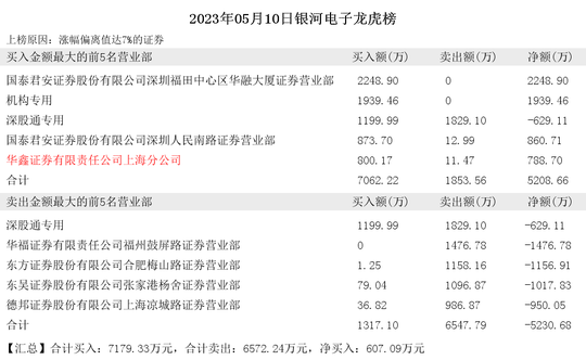 【汇总】合计买入:7179.33万元,合计卖出:6572.24万元,净买入:607.09万元。