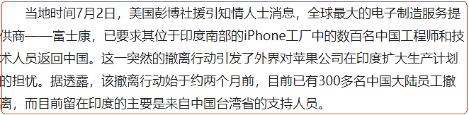 信息挖掘下,果然大早有个消息:数百名中国工程师从富士康印度回国。这一下子让市场有了个预期:苹果产能转移印度,可能有周折!