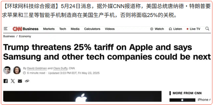 懂王那边的胃口其实更大:要求在美国生产,否则要加25%的税。但其实就算加25%,也比在美国生产划算,大家算得门儿清。