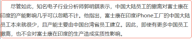 印度是极为缺乏熟练技术工人和管理经验的,不靠我们输出技术和组织力,是难以搞出高效的大规模生产的。而300多大陆员工撤离,让市场对消费电子特别是苹果链的预期抬高了!