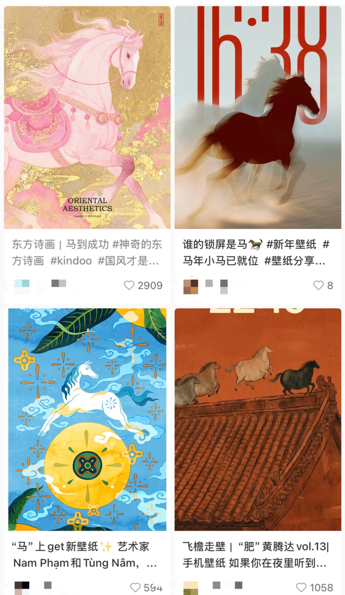 各类主题元素的马年手机壁纸,图源社交媒体截图也有人质疑,电子年货太过虚拟,让年味变得“轻飘飘”。实则不然,年味的本质从来不是载体,而是藏在背后的情感。实体年货有烟火气,电子年货有仪式感,二者并非对立,而是互补。围炉守岁时,实体年货撑起家的温暖;线上拜年时,电子年货传递远方的牵挂。真正的年味,从不因形式虚拟而褪色,只会因情感真挚而浓烈。